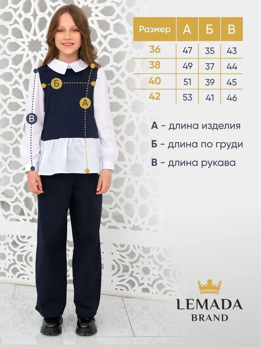 Школьная блузка для девочки, это современный вариант для школы. Блузка обманка имитирует строгий жилет, одетый поверх блузки с воротником. Школьная форма с длинным рукавом, подходящая одежда для 1 сентября или последнего звонка. Мягкая ткань обеспечивает комфорт в течение всего дня. Детская блуза прекрасно комбинируется с различными элементами гардероба и добавляет образу элегантности. Её дизайн позволяет использовать её и вне учебных дней, сохраняя праздничный дух школьных мероприятий. Обманка создает эффект многослойности без лишних деталей. Детская нарядная блузка станет отличным выбором для выпускного. В таком наряде каждая школьница почувствует себя уверенно на любом празднике школы. Длинный рукав добавляет строгости образу, создавая идеальный баланс между официальностью формы и повседневной простотой. Она облачена в современный фасон, соответствующий детским трендам.
