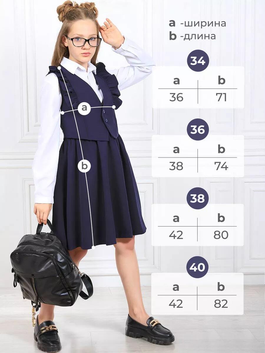 Сарафан с оборками для девочки — идеальный выбор в школу. Стильная форма для школы темно-синей расцветки отличается приталенным кроем, который хорошо подчёркивает силуэт подростка. Длина миди делает его удобным для активного времяпрепровождения, а материал из плотной премиальной ткани босс обеспечит комфорт ребенку в течение дня. Модное оформление на завязках и молнии позволяет легко надевать и снимать наряд. Юбка со складками добавляет воздушности образу. Классический универсальный сарафан прекрасно смотрится на праздниках, а также подходит для повседневной носки на учебу, подчеркивая нежность и утонченность вашей дочки. Милая осенняя форма 2024 года придаст школьнице уверенность на всех уроках и на торжественных мероприятиях!
